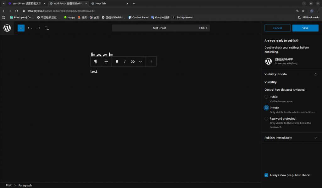 只需要在右侧去掉block——点击public—–visibility—–private就可以了